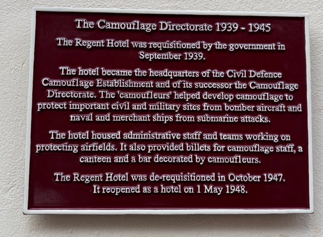 The Regent Hotel, Leamington Spa. A plaque has recently been unveiled on the wall of the building to mark its importance as the centre of the WWII Camouflage Directorate. To read the full story visit John Willocks’s excellent article here. 23rd October 2025