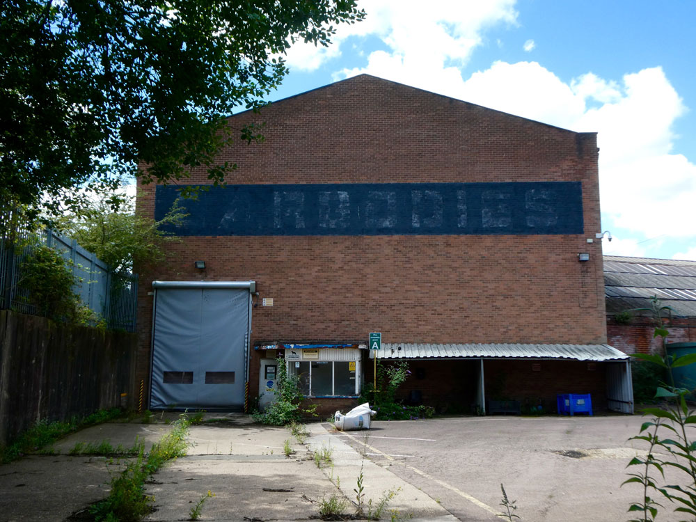 I visited the site on a quiet Sunday, and was faced with the usual barbed wire, budleias and graffiti which characterise closed industrial site. Most of the company signage had gone, although at the back of the building – access from Coundon Road – a faded CARBODIES sign can be seen, together with a couple of reminders of the company name. This is adjacent to the Coventry-Nuneaton line, with the level crossing, access tunnel and former station master’s house nearby (again on the database).